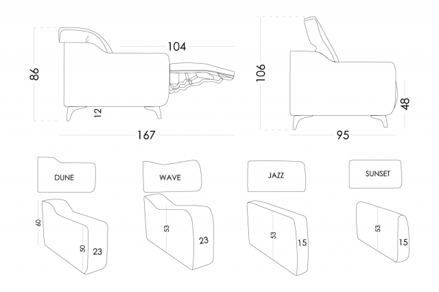 This sofa is available in a large selection of modules to make chairs, sofas, chaise's and Corner units. All with a choice of electric reclining or fixed units and 4 arm designs.
