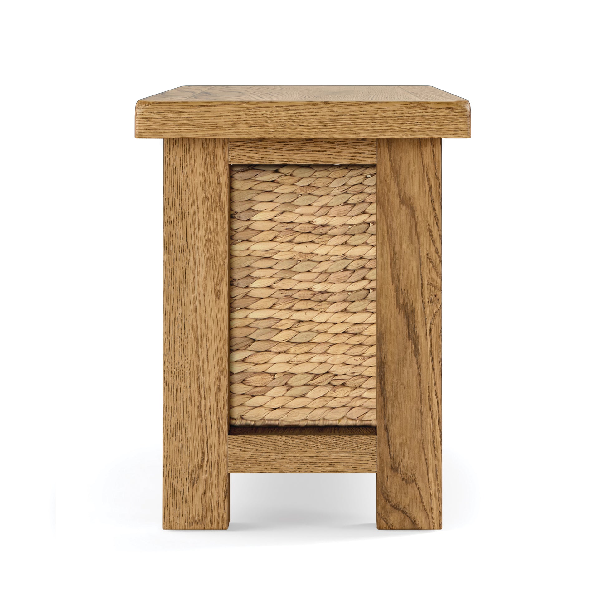 The Salisbury Oak Storage Bench combines timeless rustic charm with everyday functionality. Designed for both seating and storage, this bench includes three woven storage baskets neatly tucked beneath the seat, providing a stylish and practical solution for organizing shoes, accessories, or household essentials. Finished with a lightly distressed hand-waxed coating, it enhances the natural beauty of the oak while ensuring durability and protection. Perfect for entryways, hallways, or dining areas, this bench is a versatile and elegant addition to any home.