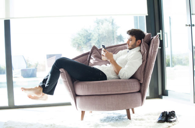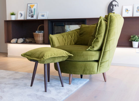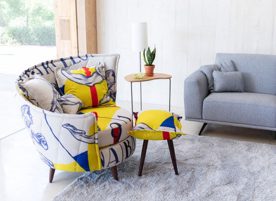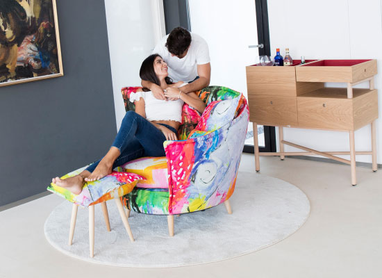 The design is completed with a light footstool that quickly transforms into a coffee table.
